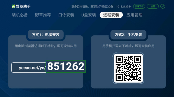 (注意:每次打开野草助手TV版,6位数都会变化)